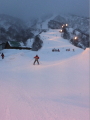 ペアリフトコースの5〜6本分くらいの距離があり、終了時間ぎりぎりで山麓へ降りることができました。急斜面で身体を支える足場を経験しましたので、緩斜面で足場を得るのは容易になりますから、身体を支える外足がしっかりできますので、パラレルターンへの発展が容易となるのです。